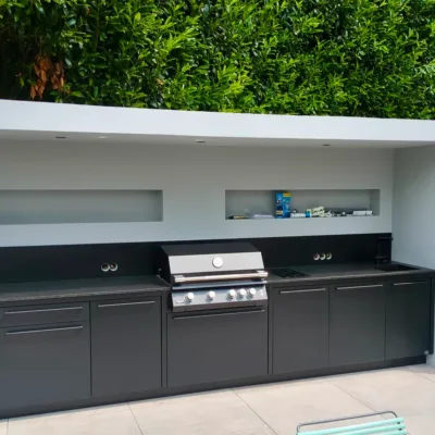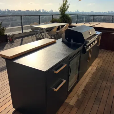 Brabura Grills keukenmodules zijn speciaal ontworpen om naadloos aan te sluiten op het Brabura Grills assortiment kookapparatuur, zoals barbecues en plancha grills. Ze bevatten ook verrassende functies, zoals een lade waarin de gasfles geplaatst kan worden, ruime opberglades en scharnieren met geleiders die zorgen voor een perfecte pasvorm voor deuren en lades.