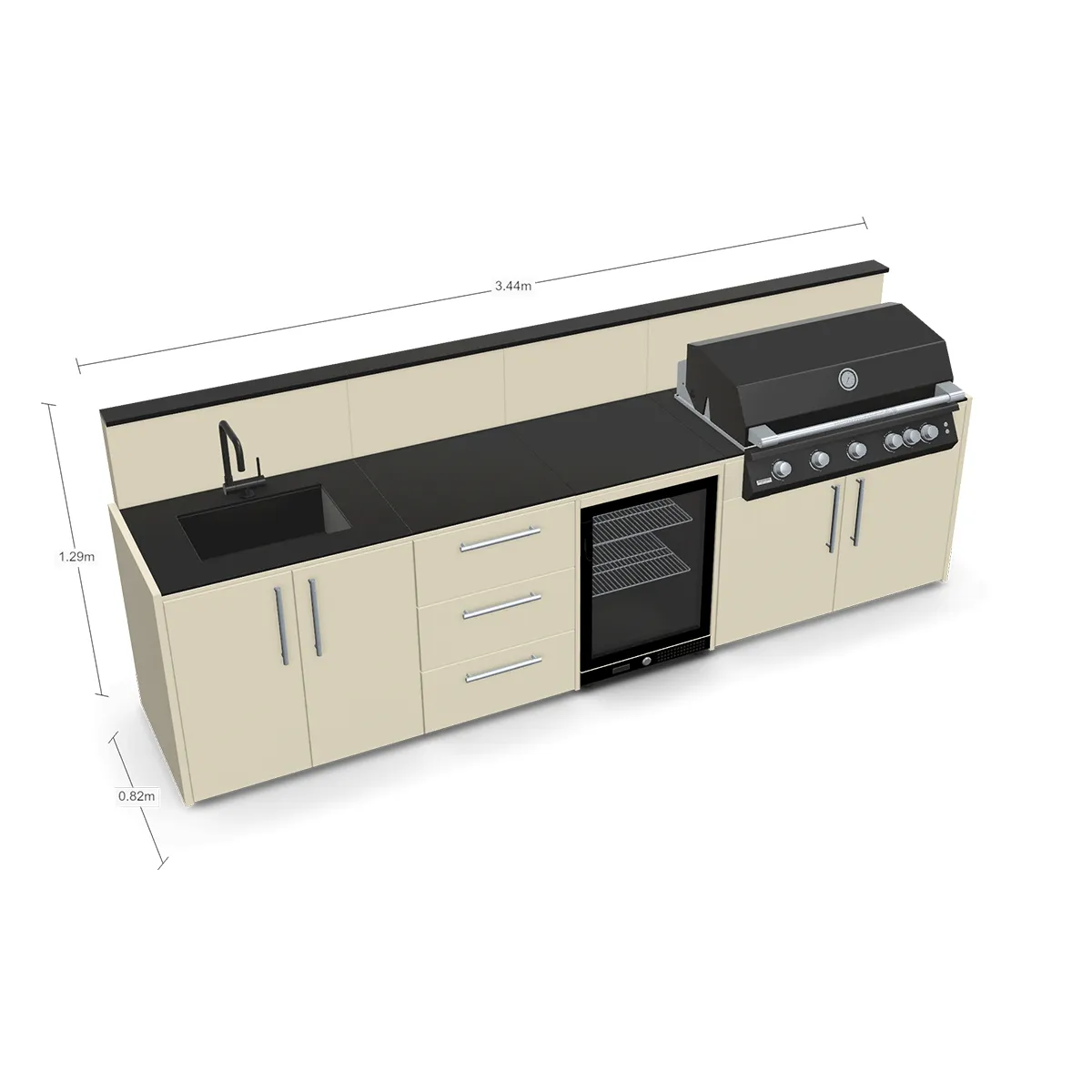 Deze complete buitenkeuken blinkt uit in ongeëvenaarde kwaliteit en superieure afwerking. Duurzame materialen en precisiebewerking zorgen voor een robuuste constructie die bestand is tegen regen, wind en UV-straling.