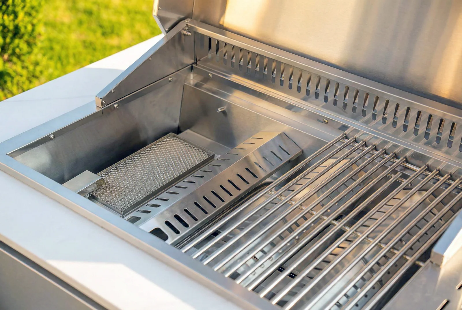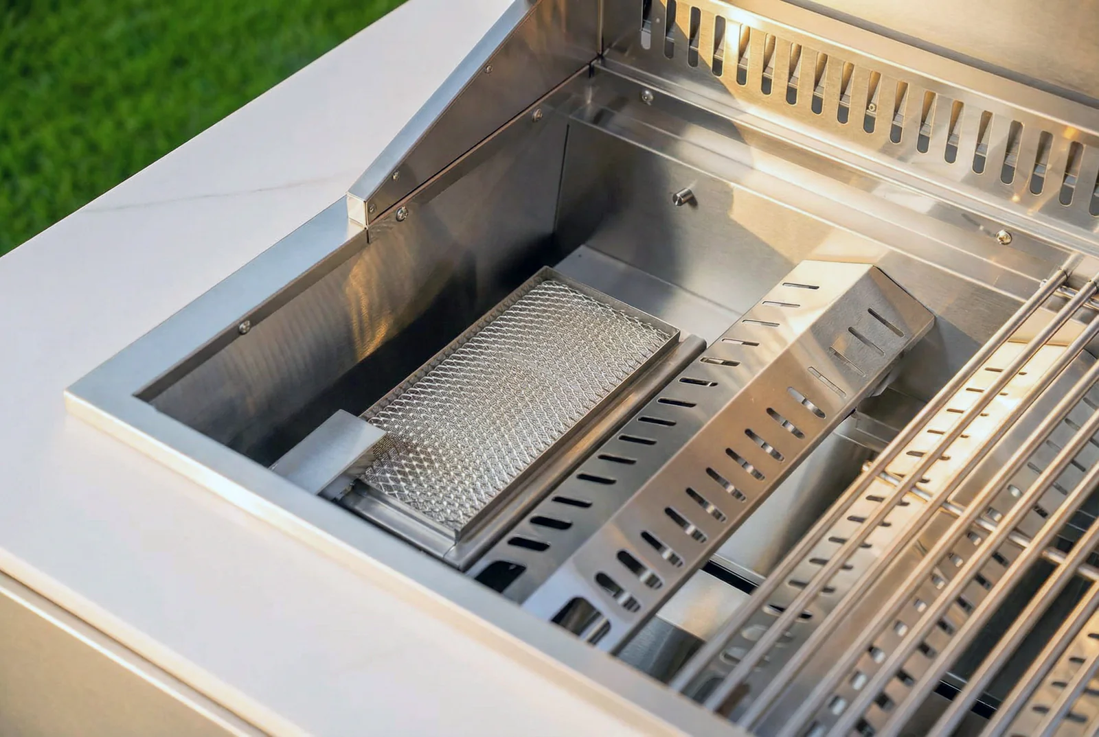 De Goriller ALPHA Complete Buitenkeuken combineert functionaliteit en stijl in een riante buitenkeuken. Deze hoogwaardige buitenkeuken biedt alles wat je nodig hebt om comfortabel te koken en te grillen in de open lucht. De Goriller ALPHA Complete Buitenkeuken is gemaakt van roestvrij staal in elegant geborstelde afwerking en voorzien met een fraai wit gesinterd marmeren look werkblad.