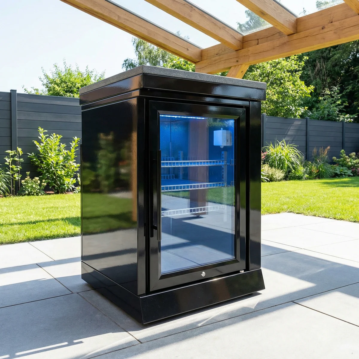 De Goriller COOL SOLO BLACK Module Buitenkeuken is uitgevoerd met een afsluitbare koelkast van 63 liter.