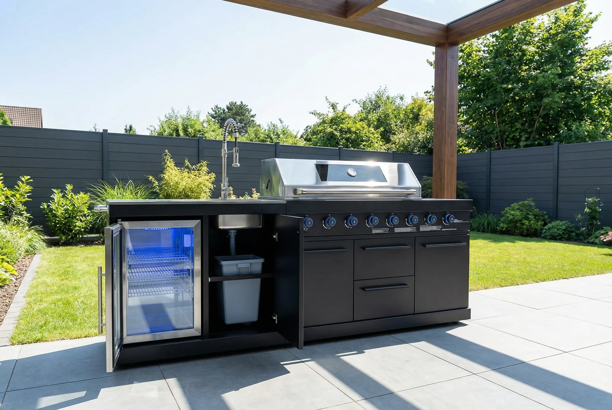 De Goriller EMPIRE S-1 Black Complete Buitenkeuken combineert functionaliteit en stijl in een compacte buitenkeuken. Deze hoogwaardige buitenkeuken biedt alles wat je nodig hebt om comfortabel te koken en te grillen in de open lucht.