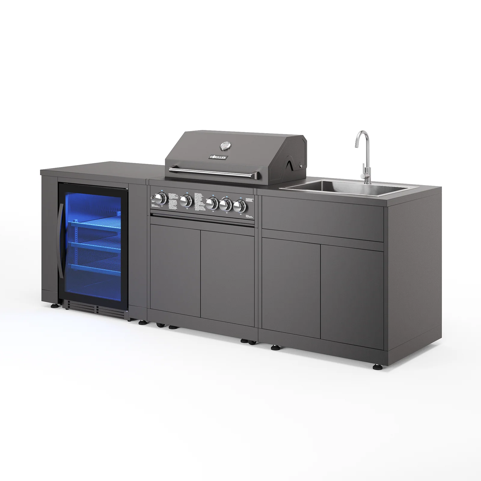 Goriller KING Complete Antraciet Buitenkeuken – De compacte buitenkeuken met gasbarbecue, koelkast en spoelbak
